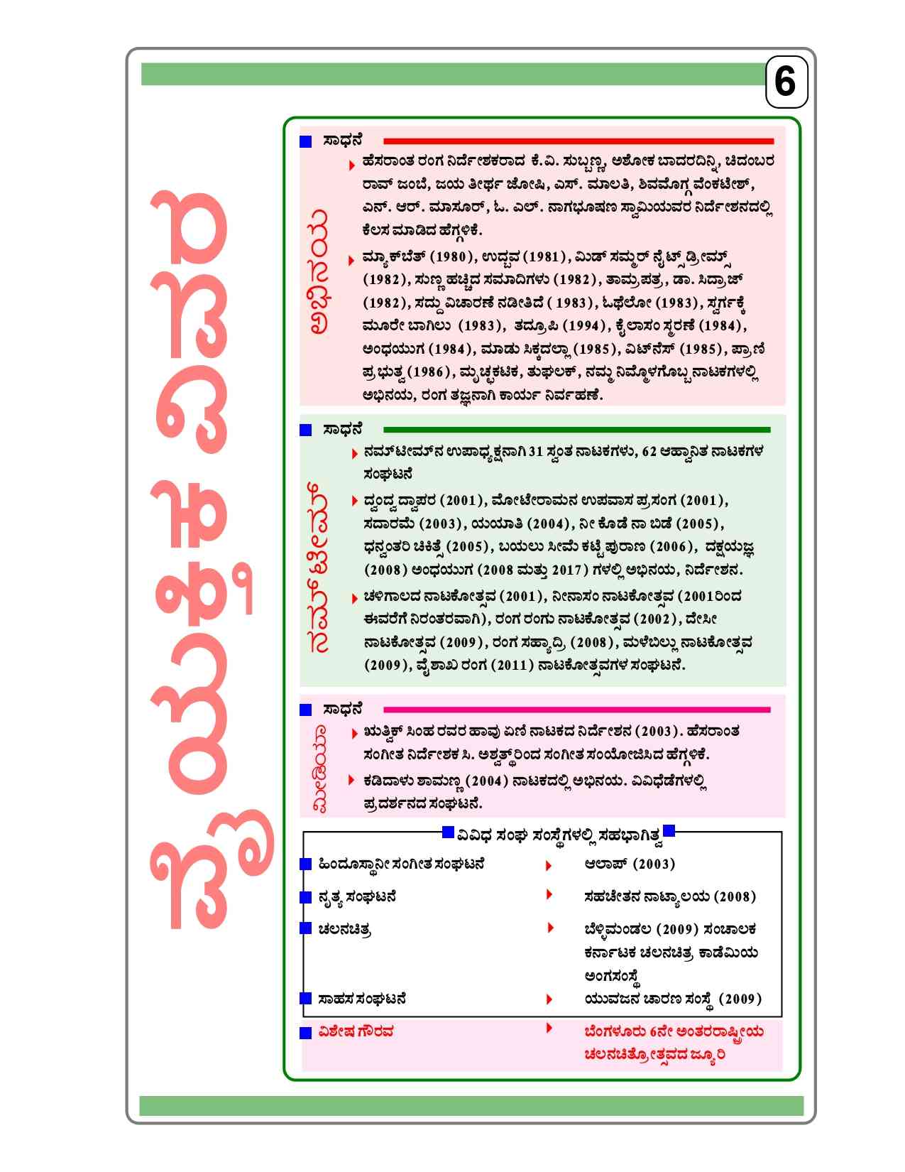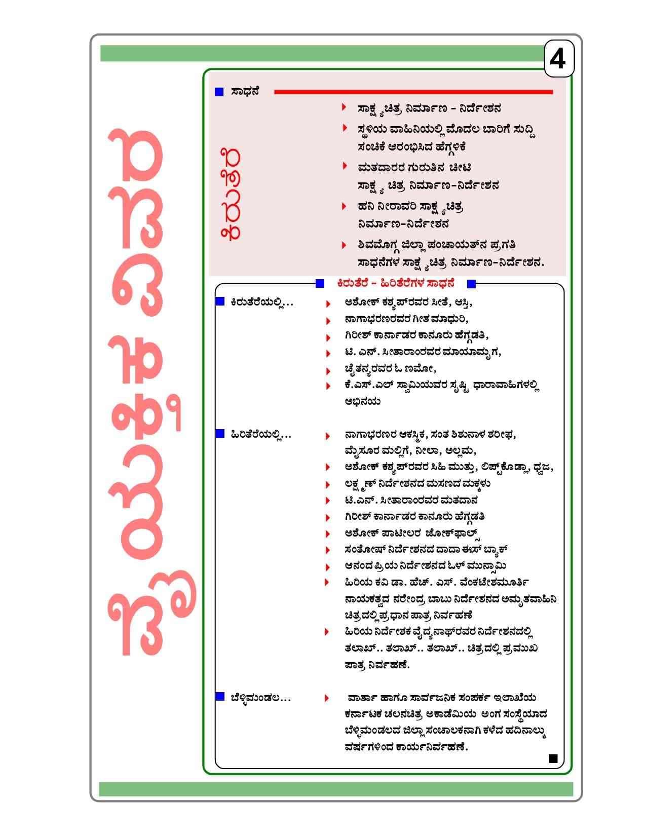 I am an actor in Kannada Film Industry, I have done many Films, Serials and Theaters till now. I am open to work in any good Project. My notable works are Akashmika, Santha shishunala sarifa, Mysore mallige, Neela, Allama, Sihi muttu, Lift Kodla, Dwaja, Mathadana, kanunhegadathi, Jog Falls, Olle monk Swamy etc.